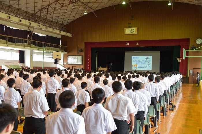 現在の自分たちの生活の中にある「授業」「部活動」等、将来どんな事に役に立つのか具体例を交えながら、今後の進路選択とその先について講演を聞かせていただきました。生徒からも「これからの進路の重要性がわかった」「進路について真剣に考えていこうと思った」等の意見が聞かれ、進路選択をしていくうえでよいきっかけとなりました。