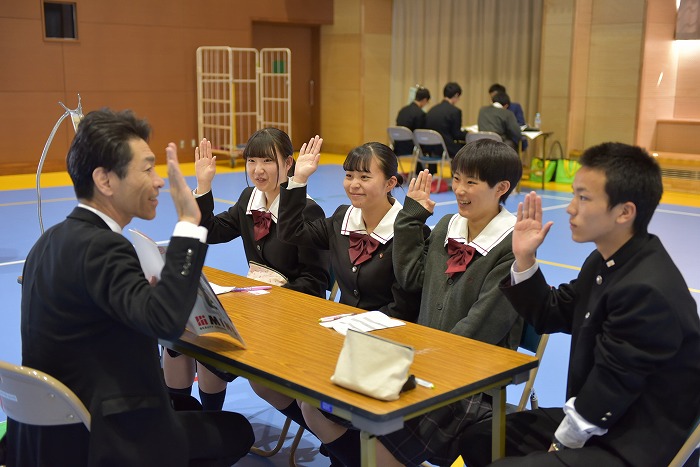 ホームSANYO STYLE 進路ガイダンス(3学年) 2019年4月23日 3学年の生徒対象に、21社の企業、54校の専門学校や短期大学、大学に来ていただき、進路ガイダンスを行いました。 5・6時間目の間に一人あたり3つ以上のブースに行き、説明を聞きました。いよいよ進路決定に向け本格的に動き出します。