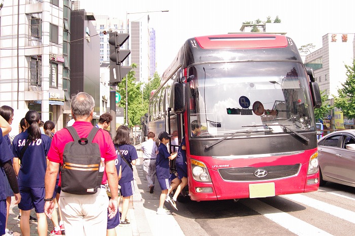 今日は一日ソウル観光です。バスに乗り込みソウル中心部へと向かいます。