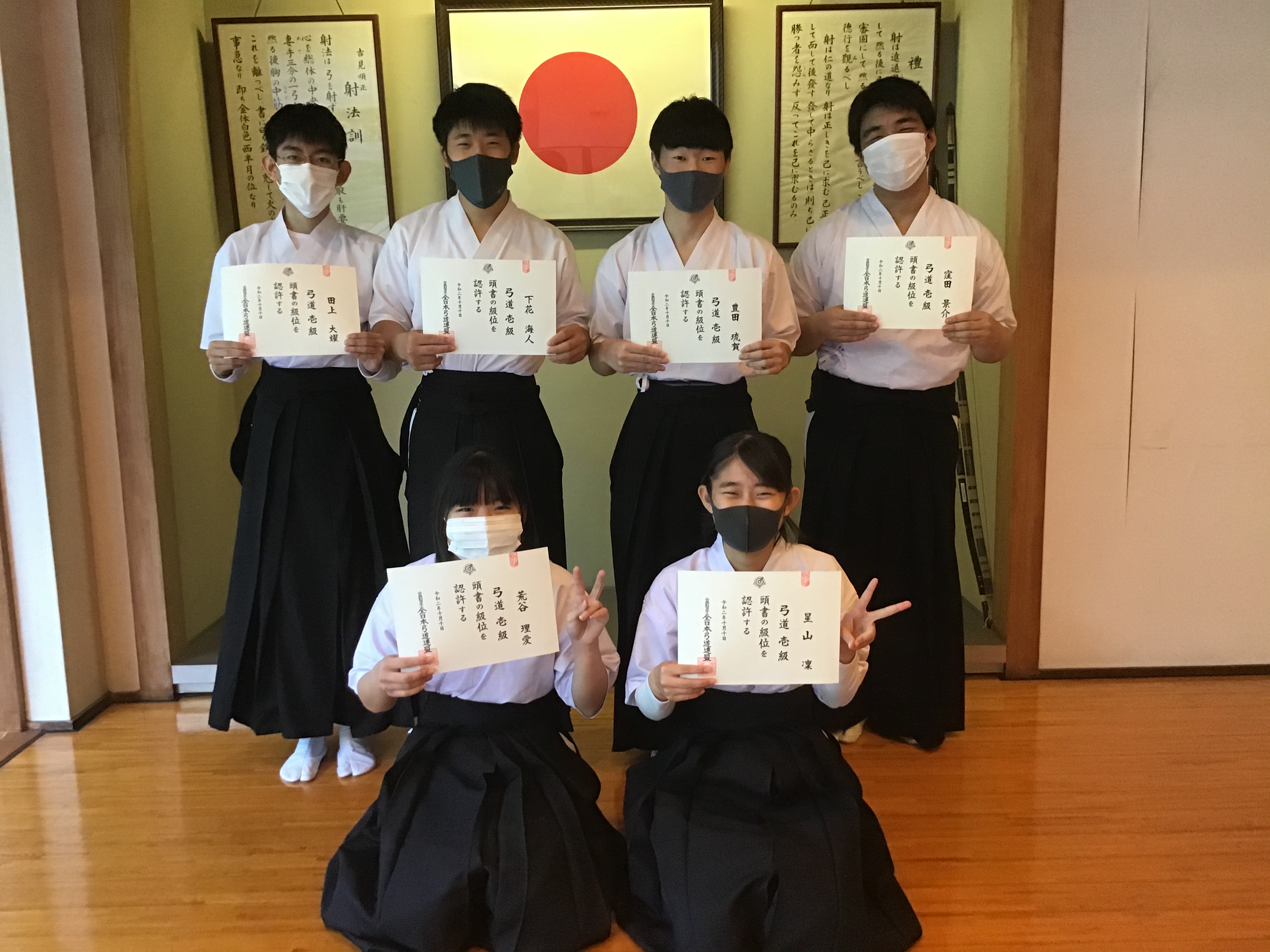 ホームCLUBLOG運動部弓道部 弓道 1級の認許状が届きました 2020年12月4日 今年度はじめての昇級審査が行われ、 ビデオ審査という慣れない形式でしたが、 受審した全員が1級と認定されました。 2回目の昇段・昇級審査で提出するビデオの撮影も終わり、 後は審査を待つばかりです。