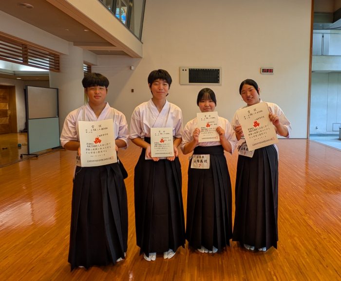 9月6日(土)7日(日)県立総合体育館弓道場で行われた大会で1年生女子団体が優勝しました。1年生女子個人4位中島結美・5位北村歌菜、1年生男子団体8位、弓道を始めて5か月、初めての大会での嬉しい結果となりました。次は10月の県新人大会、チーム山陽高校弓道部で頑張ります。応援よろしくお願いいたします。