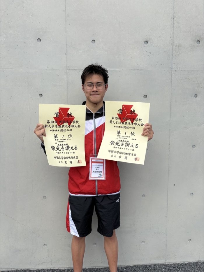 山陽高校からは馬屋原将翔くんが出場し、「男子400m 個人メドレー」、「男子 400m 自由形」の2種目ともに1位入賞、さらに「男子400m 自由形」では大会新記録を出すことができました!