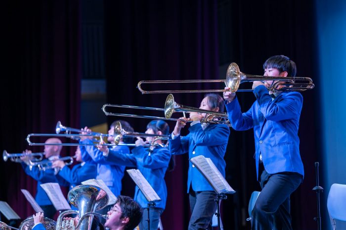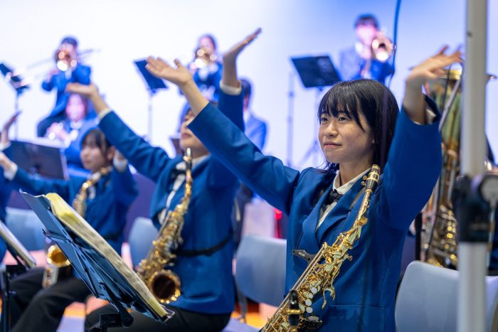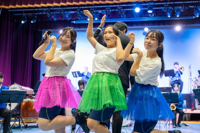 本館ステージではPTAコーラス、吹奏楽部、ダンス、アンサンブルの演出です。