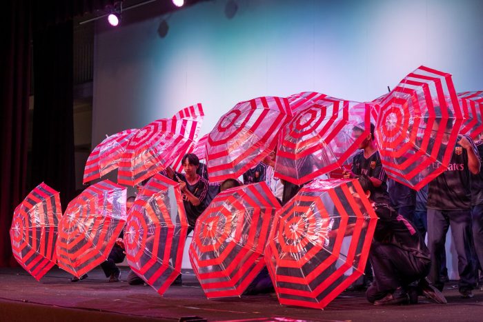 1日目は体育館で多くの団体の演出で盛り上がりました。