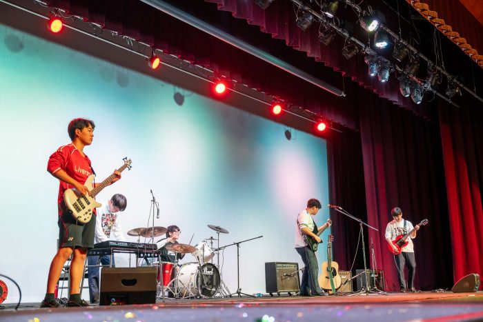 体育館ステージでは軽音楽部をはじめとする様々な団体の演出が行われました。