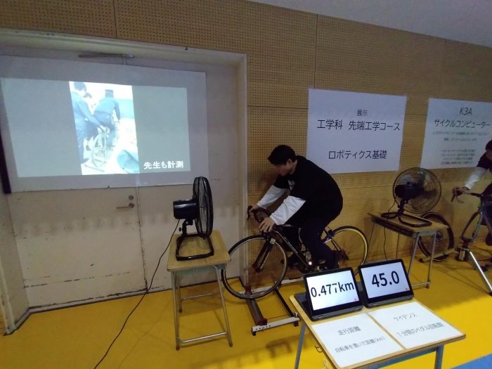11月1日(土)に行われた山陽高校文化祭で、工学科先端工学コース3年生がサイクルコンピューターの展示・発表を行いました。