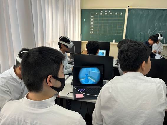 工学科先端工学コースでは、文部科学省「DXハイスクール」事業による連携授業の第6回を実施しました。 前回までに進めてきたMeta Questの環境設定が完了し、Unityを用いた実際の編集・制作作業に入りました。
