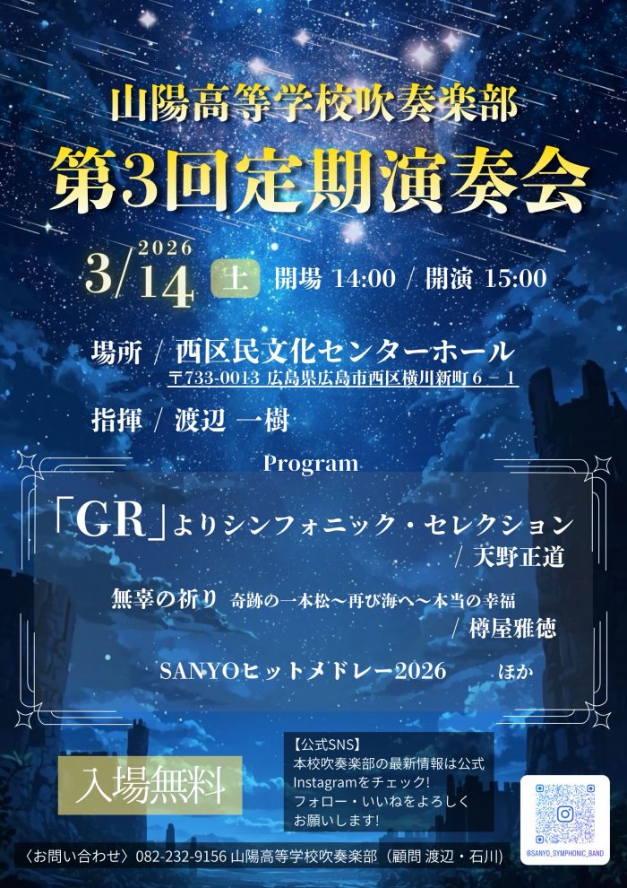 皆さんこんにちは。山陽高校吹奏楽部です。