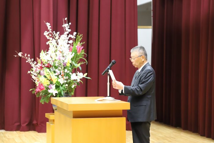 同窓会会長野﨑政憲様より温かい歓迎のお言葉と記念品をいただきました。