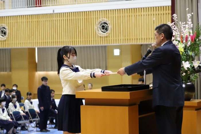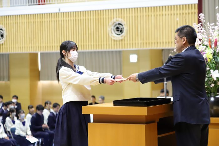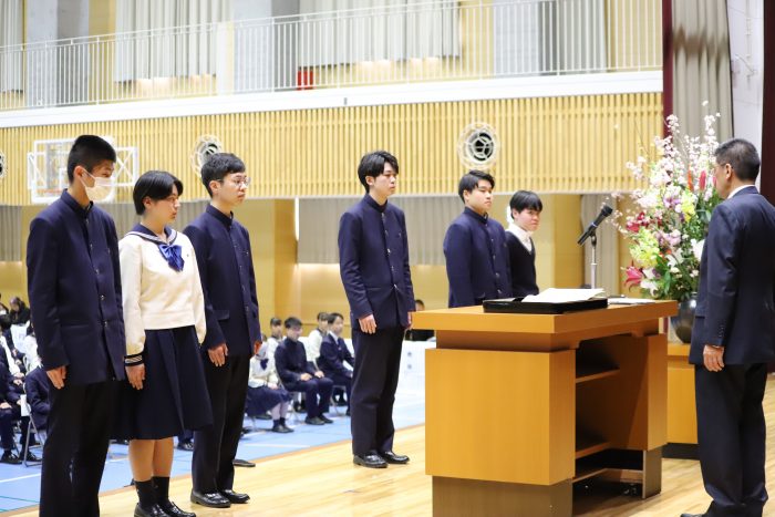入会式後は 3年間努力を積み重ねてきた生徒たちの表彰も行われました。努力賞(皆勤賞)をはじめ、それぞれの分野で誠実に頑張り続けてきた生徒の表彰です。