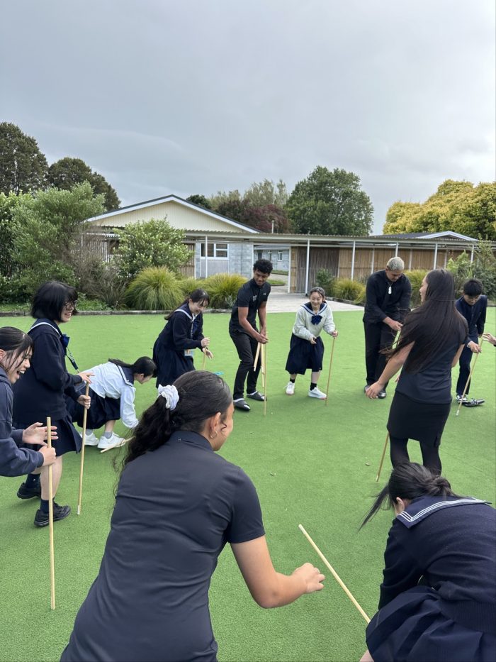 続いて木の棒を使ったマオリの遊びにも挑戦。簡単そうで難しい。でも最高に楽しい時間でした!!現地の学生たちが笑顔で丁寧に教えてくれたのも印象的でした😊