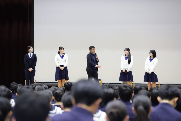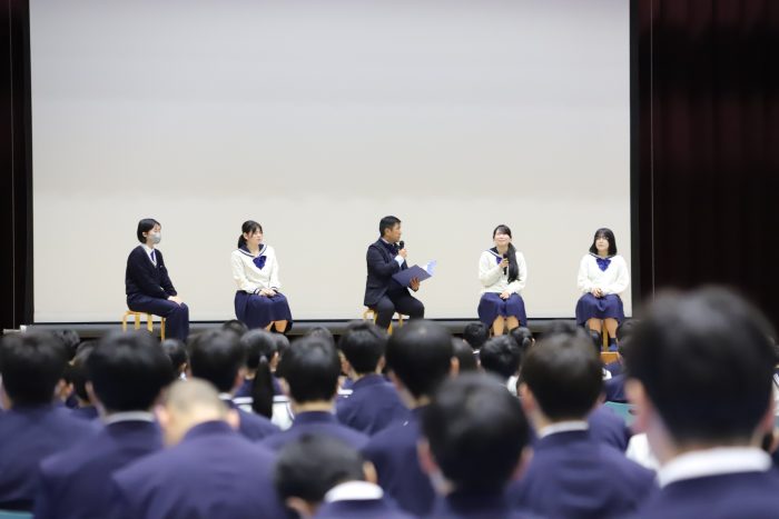 高校1年生の生徒に向けて、2年生・3年生からのメッセージ企画「教えて先輩!!」が行われました。
