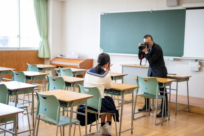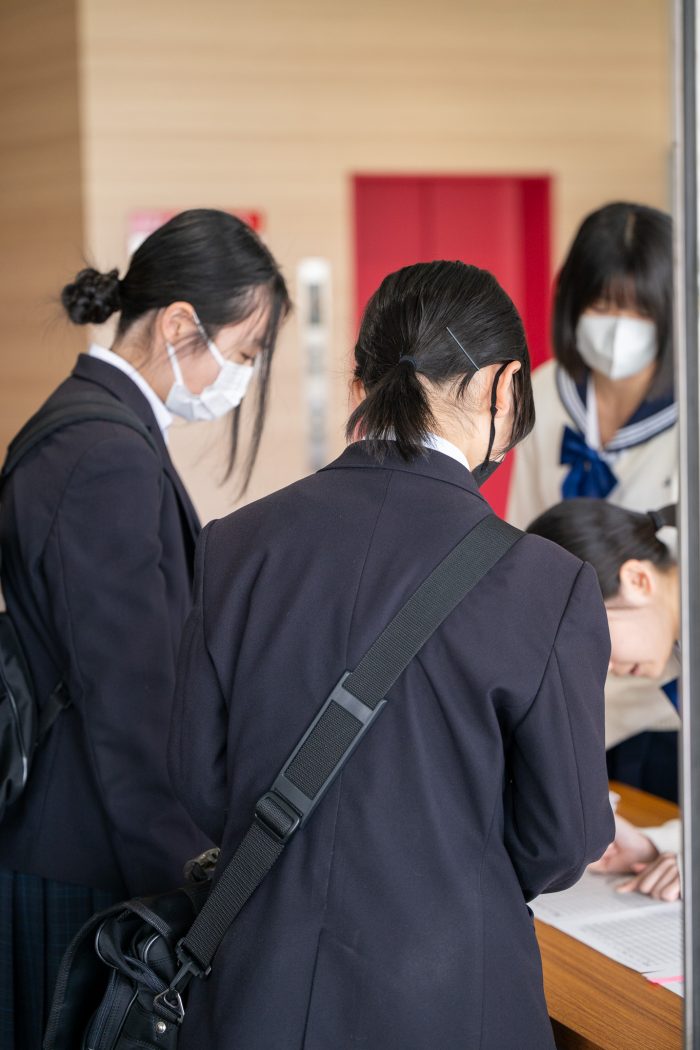 説明会の後には、施設見学や制服試着コーナーなど、盛りだくさんの内容でした。制服試着コーナーでは、制服を試着して山陽生になりきって記念撮影ができます!