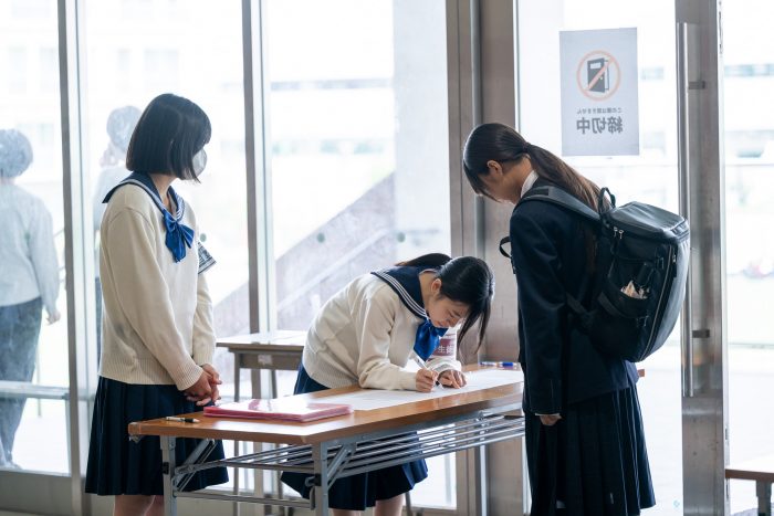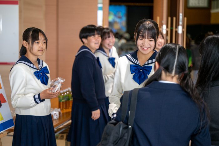 受付では、生徒会と女子サッカー部の生徒が元気にお出迎えしました。