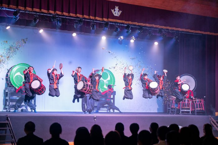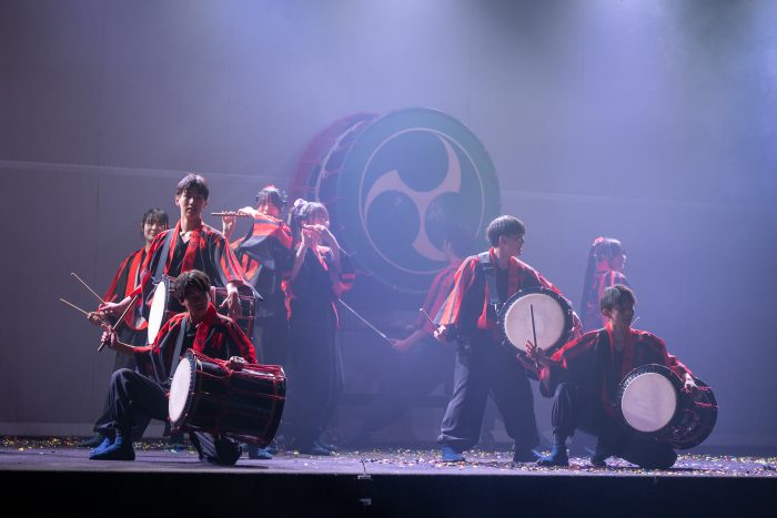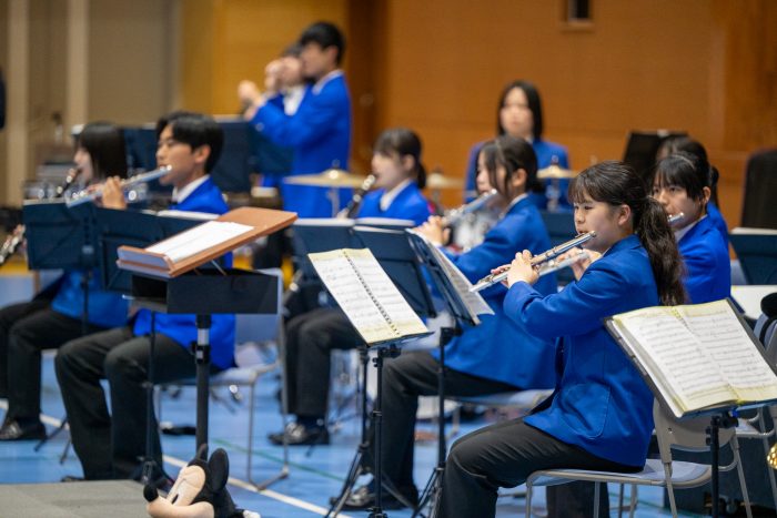 ウエルカムセレモニーとして、大迫力の吹奏楽と和太鼓部「弾」の演奏で開幕です!