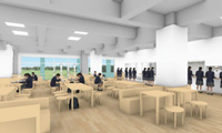 図書館・大会議室・PCルームを一体化し、知と創造の拠点を新設。自習スペースの充実や、電子黒板を備えたミニ講義室も設置 。