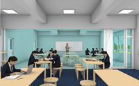 外観を本館・体育館と統一感のあるデザインとし、 教室のホワイトボード化、全階のトイレを乾式リニューアルを図ります。